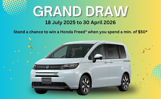 Stand a chance to win a Honda Freed^ in our Grand Draw when you spend a min. of $50 at HarbourFront Centre from 18 July 2025 to 30 April 2026.