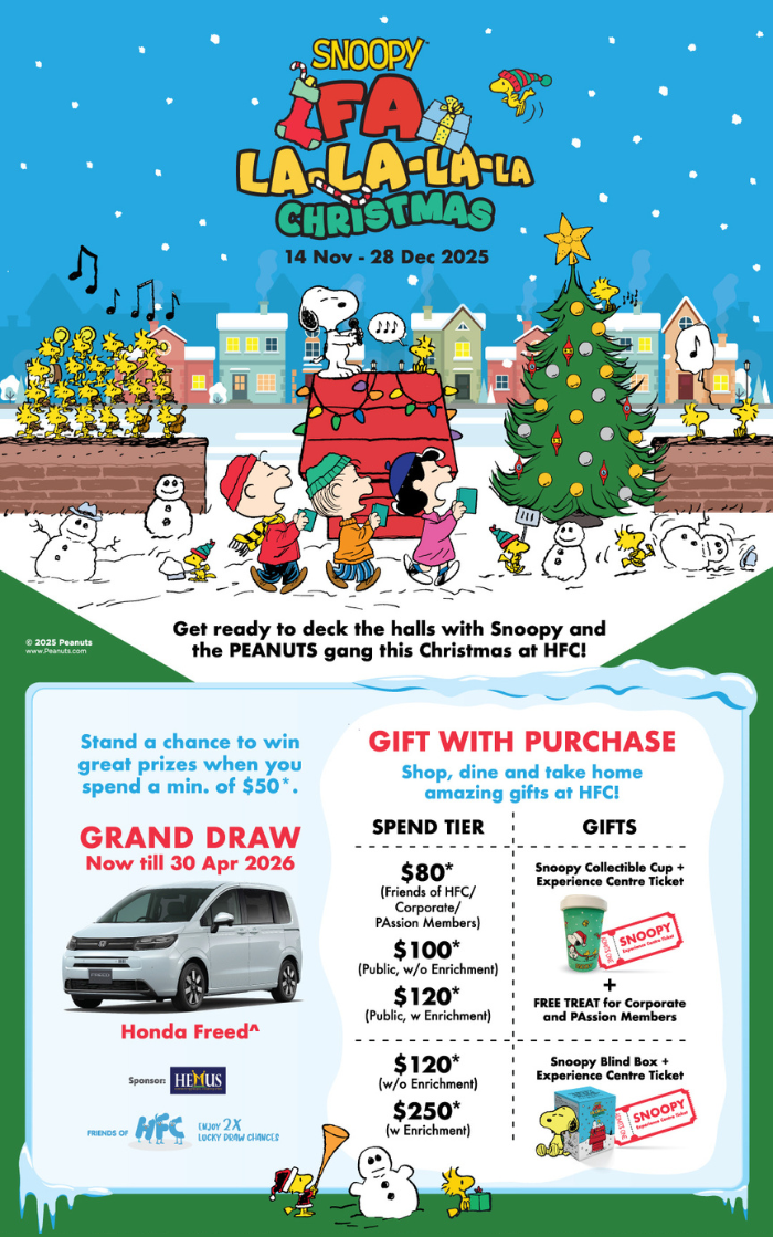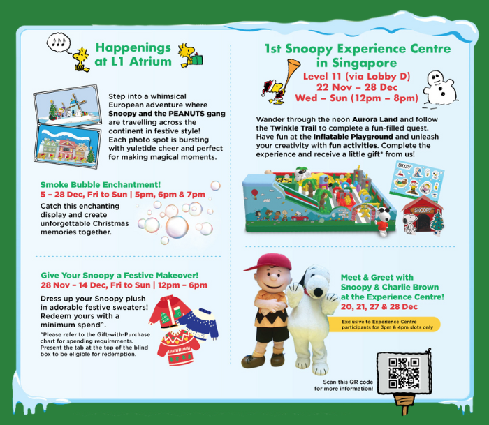 13 Nov - 28 Dec 2025Save to Calendar 2025/11/13 2025/12/28 Singapore/Asia Snoopy L11 Experience Centre Harbour Front Centre, 1 Maritime Square Singapore 099253 -
