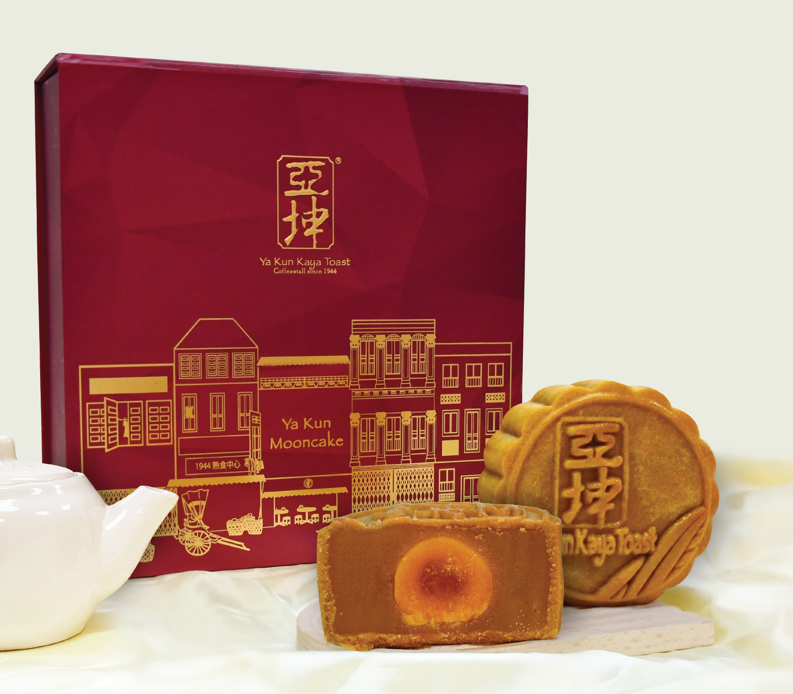 Taste the tradition, a moment of togetherness. Savor Ya Kun’s traditional mooncakes with a twist featuring signature flavours such as Coffee, Kaya Toast, Kaya with Melon Seeds and Lotus Paste with Single Yolk.